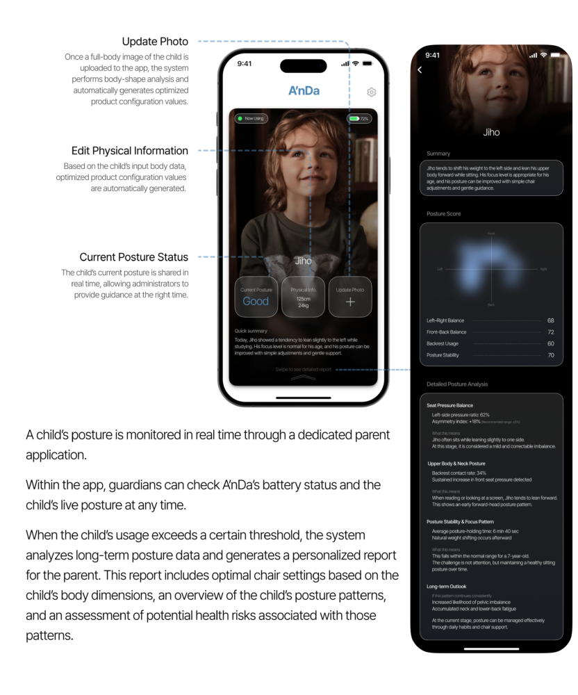 A’nDa: 아이의 성장에 맞춰 변화하는 스마트 자세 교정 솔루션